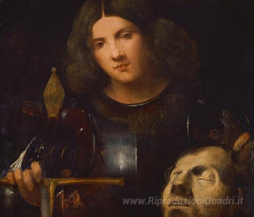Ti offriamo una riproduzione artigianale su tela dell'opera famosa 'Davide con la testa di Golia' di Giorgione, dal Museo delle Riproduzioni.
