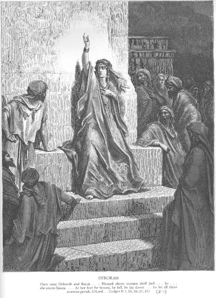 Ti offriamo una riproduzione artigianale su tela dell'opera famosa 'Deborah, incisa da Ettlin' di Gustave Dore, dal Museo delle Riproduzioni.
