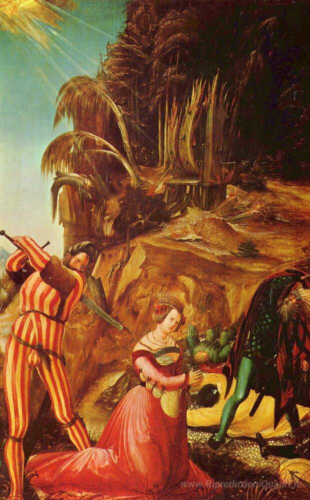 Ti offriamo una riproduzione artigianale su tela dell'opera famosa 'Decollazione di S. Caterina' di Albrecht Altdorfer, dal Museo delle Riproduzioni.