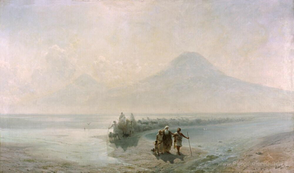 Ti offriamo una riproduzione artigianale su tela dell'opera famosa 'Deiezione di Noè da montagna Ararat' di Ivan Aivazovsky, dal Museo delle Riproduzioni.