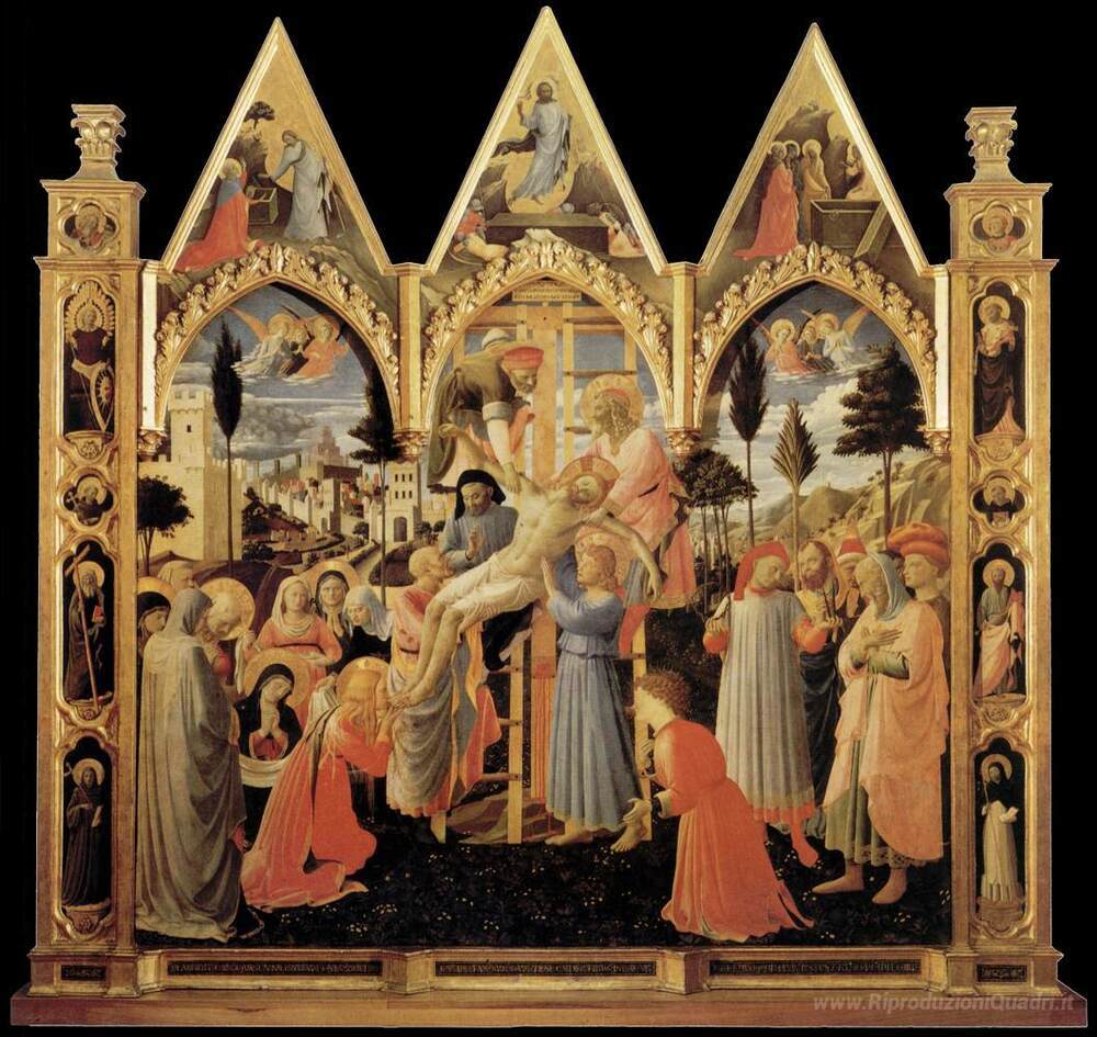 Ti offriamo una riproduzione artigianale su tela dell'opera famosa 'Deposizione dalla Croce' di Fra Angelico, dal Museo delle Riproduzioni.