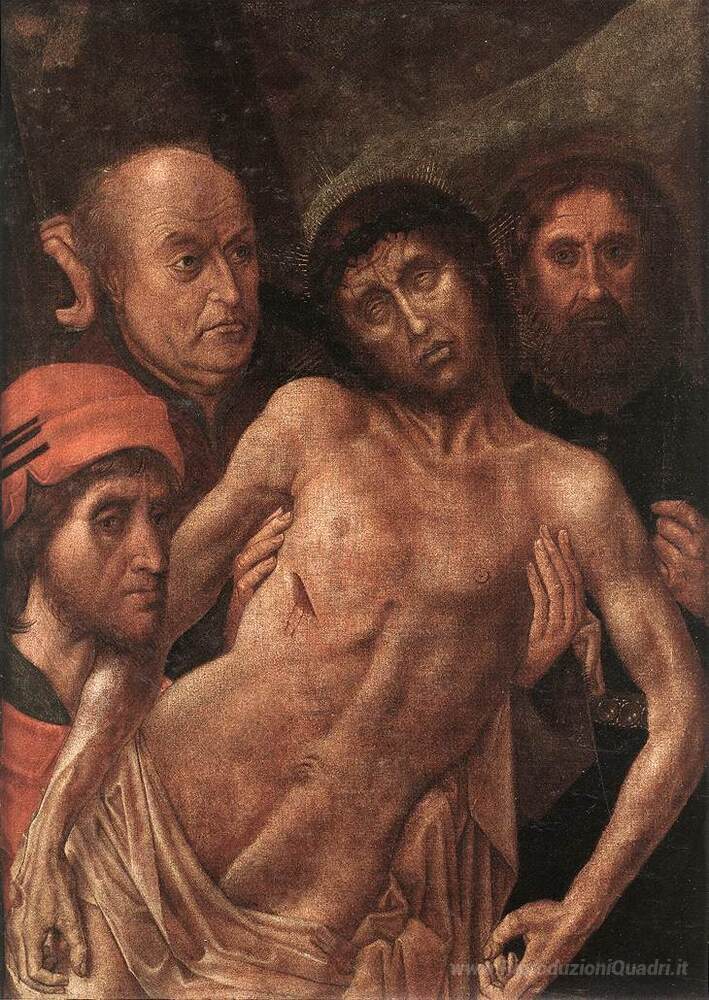 Ti offriamo una riproduzione artigianale su tela dell'opera famosa 'Deposizione Dittico (Small Deposizione, di sinistra)' di Hugo van der Goes, dal Museo delle Riproduzioni.