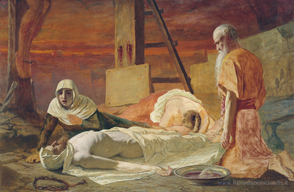 Ti offriamo una riproduzione artigianale su tela dell'opera famosa 'Deposizione' di Vasily Perov, dal Museo delle Riproduzioni.
