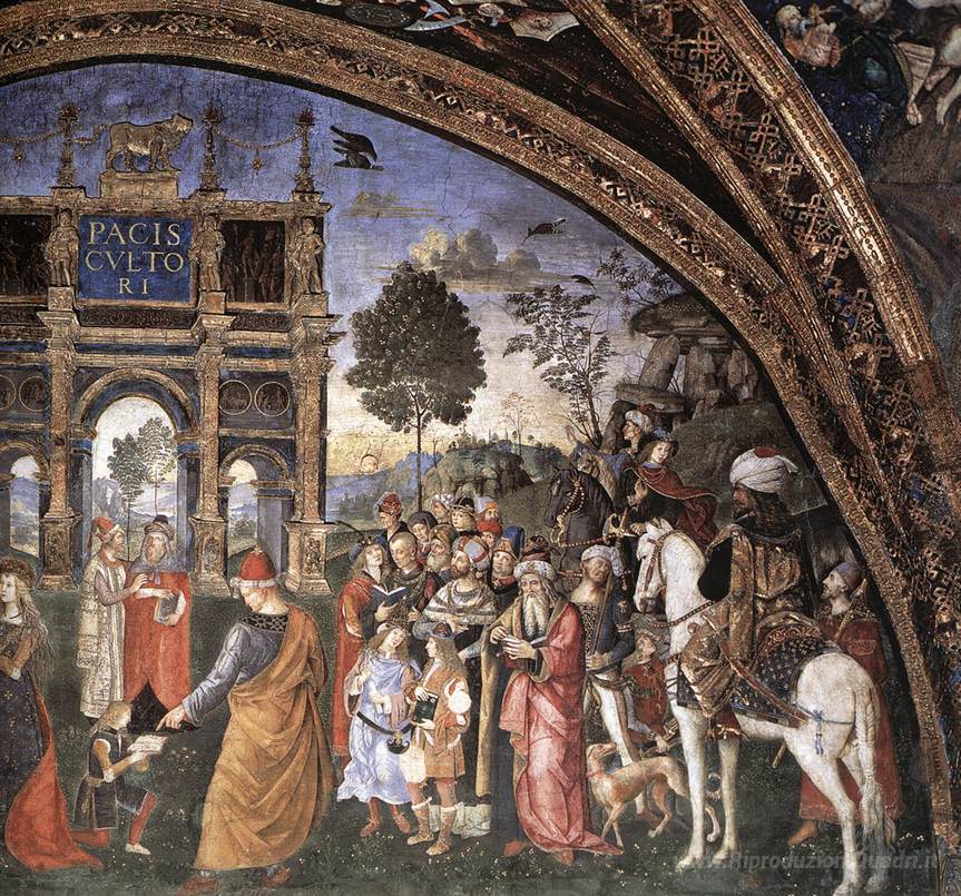 Ti offriamo una riproduzione artigianale su tela dell'opera famosa 'Disputa di Santa Caterina (particolare)' di Pinturicchio, dal Museo delle Riproduzioni.