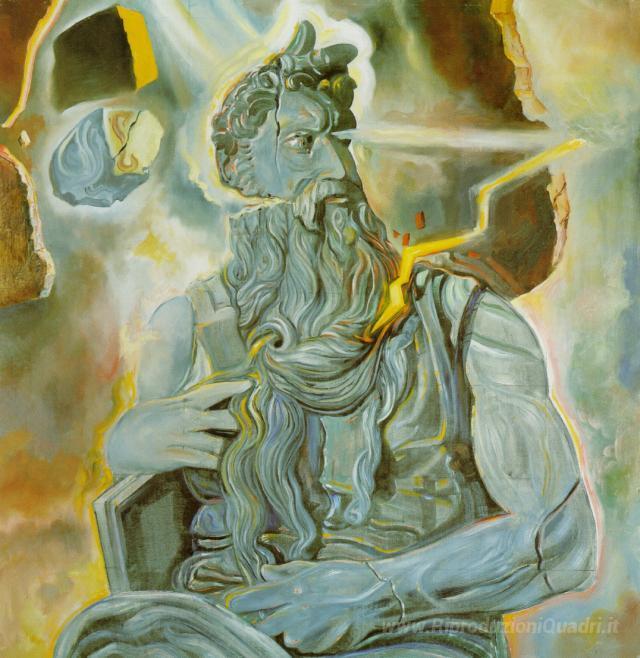 Ti offriamo una riproduzione artigianale su tela dell'opera famosa 'Dopo di Michelangelo 'Mosè', sulla Tomba di Giulio II a Roma' di Salvador Dali, dal Museo delle Riproduzioni.