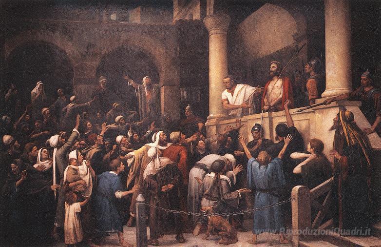 Ti offriamo una riproduzione artigianale su tela dell'opera famosa 'Ecce Homo!' di Mihaly Munkacsy, dal Museo delle Riproduzioni.