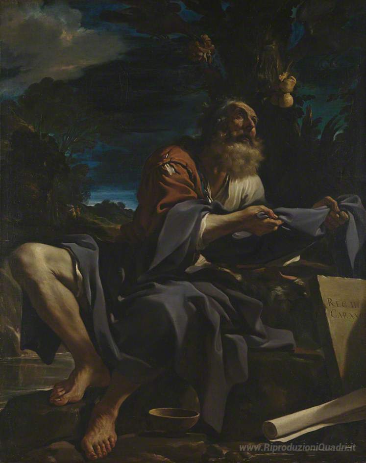 Ti offriamo una riproduzione artigianale su tela dell'opera famosa 'Elia nutrito dai corvi' di Guercino, dal Museo delle Riproduzioni.