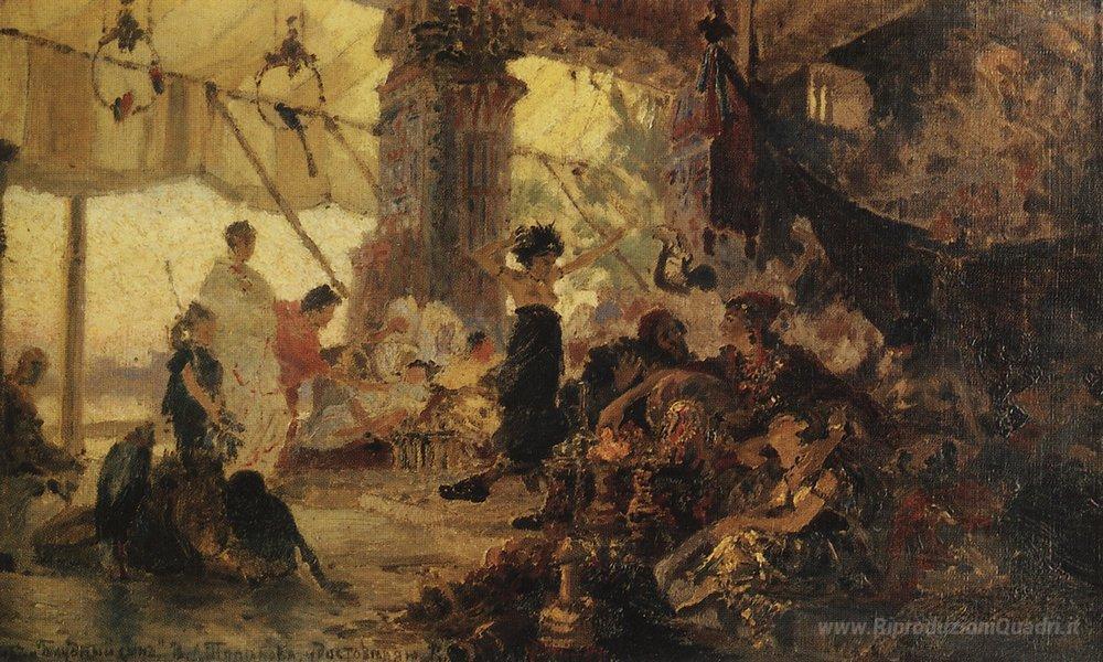 Ti offriamo una riproduzione artigianale su tela dell'opera famosa 'Figliol prodigo' di Vasily Polenov, dal Museo delle Riproduzioni.
