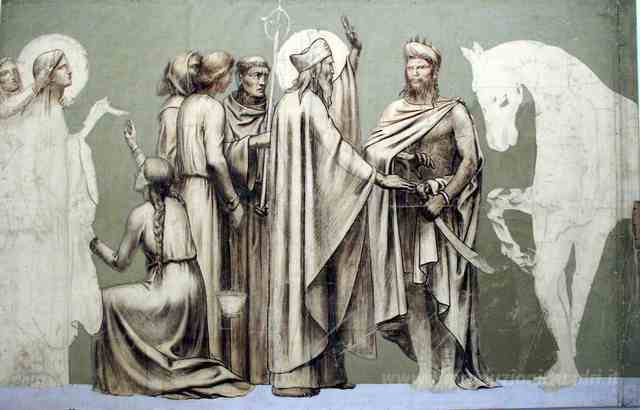 Ti offriamo una riproduzione artigianale su tela dell'opera famosa 'Fresco per la decorazione del Pantheon: santi' di Pierre Puvis de Chavannes, dal Museo delle Riproduzioni.