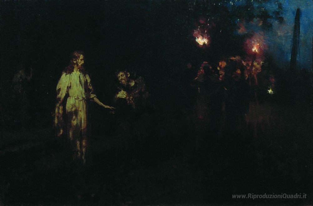 Ti offriamo una riproduzione artigianale su tela dell'opera famosa 'Gesù Cristo nel giardino del Getsemani' di Ilya Repin, dal Museo delle Riproduzioni.