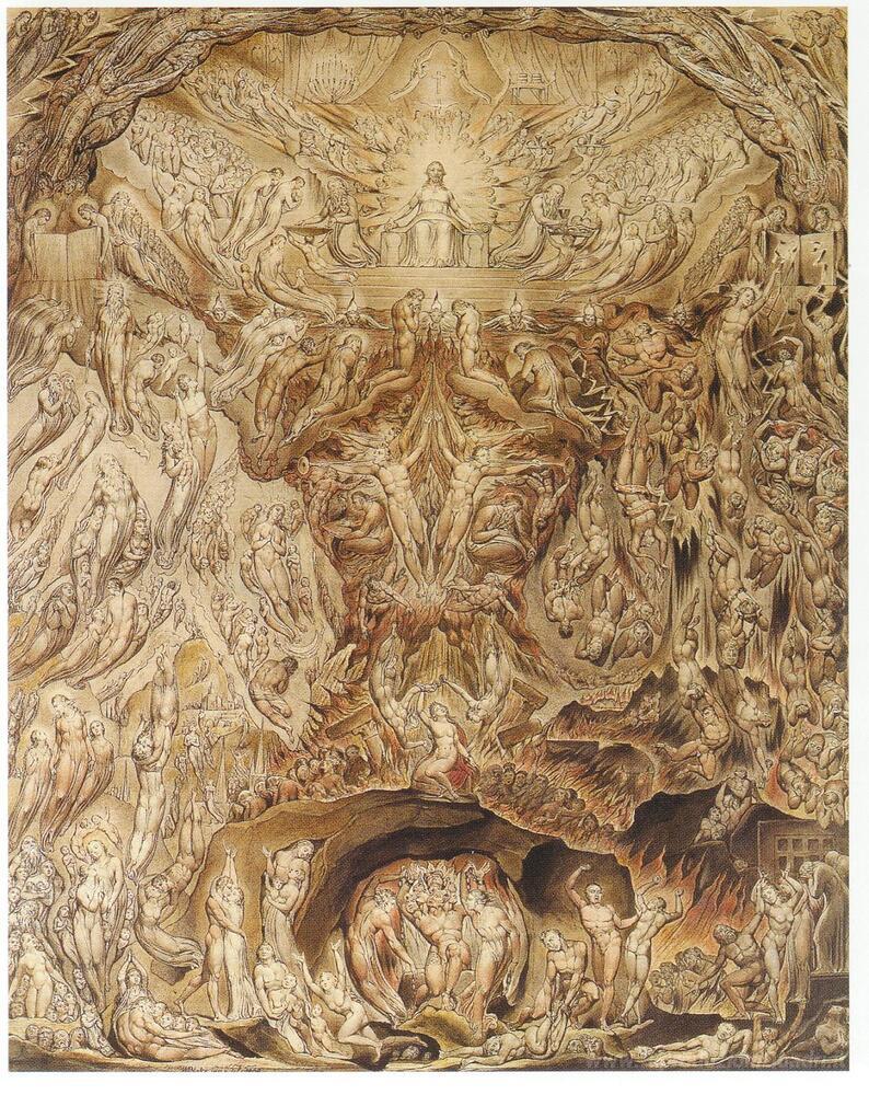 Ti offriamo una riproduzione artigianale su tela dell'opera famosa 'Giudizio Universale' di William Blake, dal Museo delle Riproduzioni.