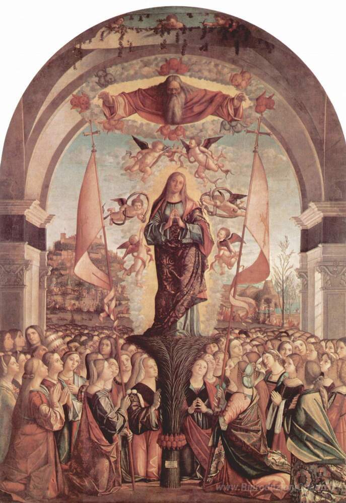 Ti offriamo una riproduzione artigianale su tela dell'opera famosa 'Glorificazione di S. Orsola e le compagne' di Vittore Carpaccio, dal Museo delle Riproduzioni.