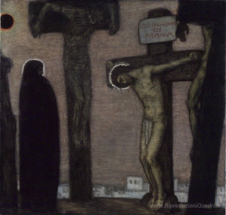 Ti offriamo una riproduzione artigianale su tela dell'opera famosa 'Golgota' di Franz Stuck, dal Museo delle Riproduzioni.