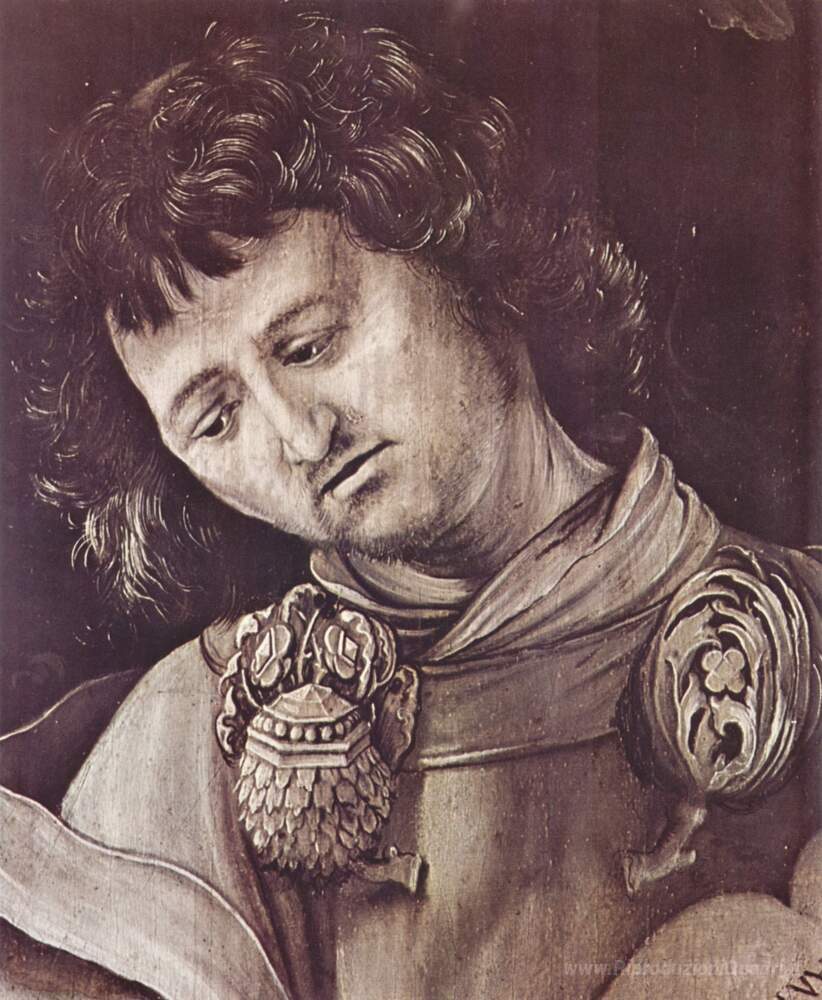 Ti offriamo una riproduzione artigianale su tela dell'opera famosa 'Heller Pala (particolare)' di Matthias Grünewald, dal Museo delle Riproduzioni.