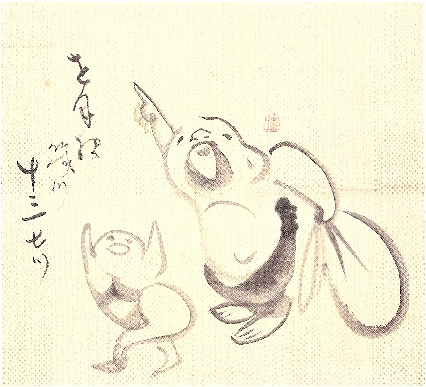 Ti offriamo una riproduzione artigianale su tela dell'opera famosa 'Hotei e Bambino' di Sengai, dal Museo delle Riproduzioni.