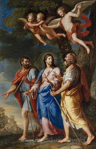 Ti offriamo una riproduzione artigianale su tela dell'opera famosa 'I pellegrini di Emmaus' di Jacques Stella, dal Museo delle Riproduzioni.