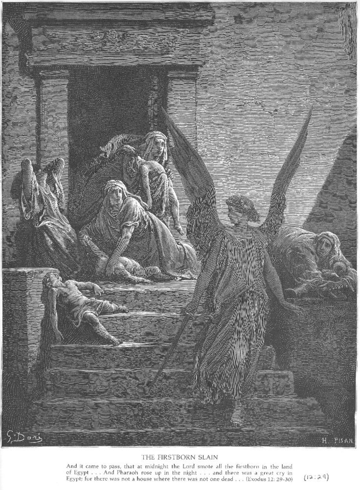 Ti offriamo una riproduzione artigianale su tela dell'opera famosa 'I primogeniti degli egiziani vengono uccisi' di Gustave Dore, dal Museo delle Riproduzioni.