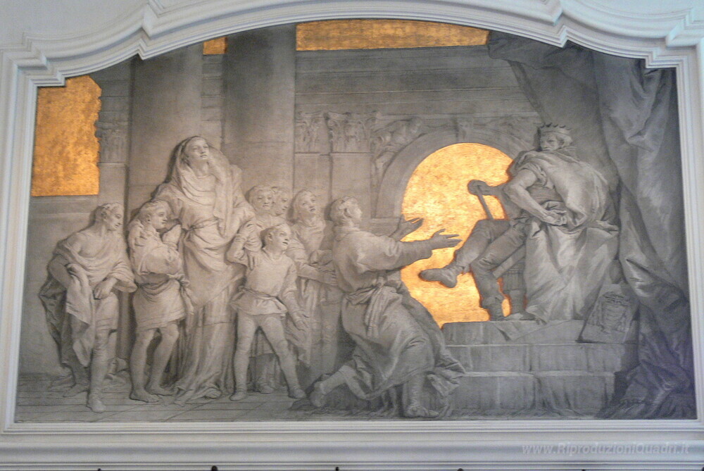 Ti offriamo una riproduzione artigianale su tela dell'opera famosa 'I sette fratelli Maccabei sono condannati a morte da Antioco IV' di Giovanni Domenico Tiepolo, dal Museo delle Riproduzioni.