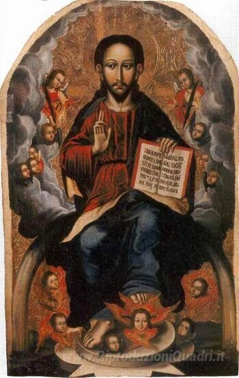 Ti offriamo una riproduzione artigianale su tela dell'opera famosa 'Icona del Salvatore del villaggio di Horodyshche in Volinia (tar' di Yov Kondzelevych, dal Museo delle Riproduzioni.