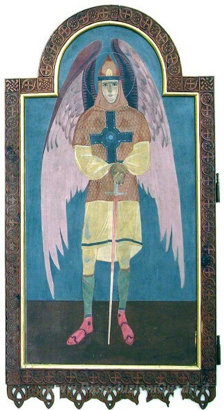 Ti offriamo una riproduzione artigianale su tela dell'opera famosa 'Icona di San Michele Arcangelo' di Petro Kholodny (Elder), dal Museo delle Riproduzioni.