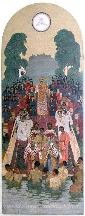 Ti offriamo una riproduzione artigianale su tela dell'opera famosa 'Icona La cristianizzazione della Rus '' di Petro Kholodny (Elder), dal Museo delle Riproduzioni.