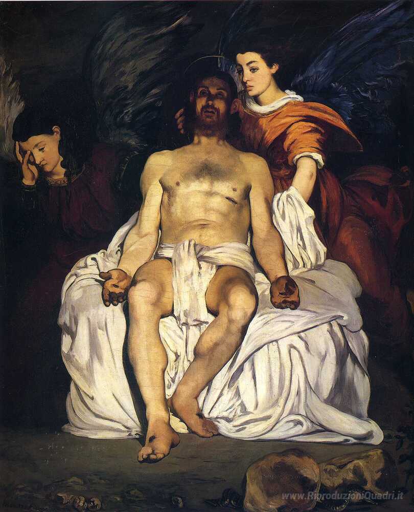 Ti offriamo una riproduzione artigianale su tela dell'opera famosa 'Il Cristo morto con angeli' di Edouard Manet, dal Museo delle Riproduzioni.