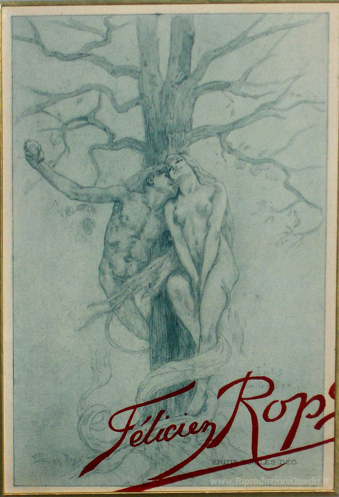 Ti offriamo una riproduzione artigianale su tela dell'opera famosa 'Il diavolo ed Eva nel Giardino dell'Eden' di Felicien Rops, dal Museo delle Riproduzioni.