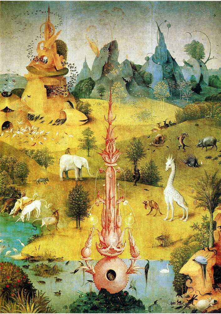 Ti offriamo una riproduzione artigianale su tela dell'opera famosa 'Il Giardino delle Delizie (particolare)' di Hieronymus Bosch, dal Museo delle Riproduzioni.