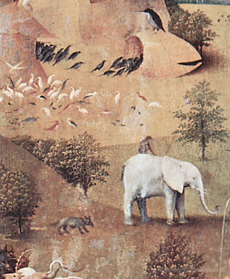 Ti offriamo una riproduzione artigianale su tela dell'opera famosa 'Il Giardino delle Delizie (particolare)' di Hieronymus Bosch, dal Museo delle Riproduzioni.