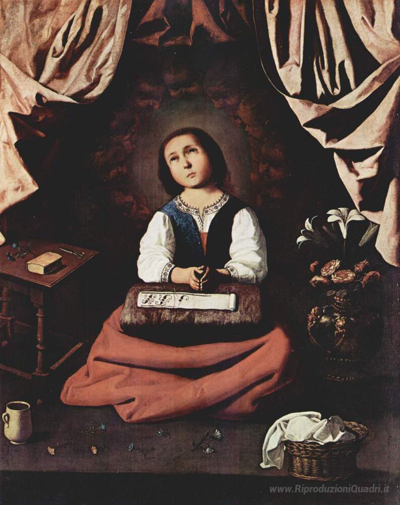 Ti offriamo una riproduzione artigianale su tela dell'opera famosa 'Il giovane Vergine' di Francisco de Zurbaran, dal Museo delle Riproduzioni.