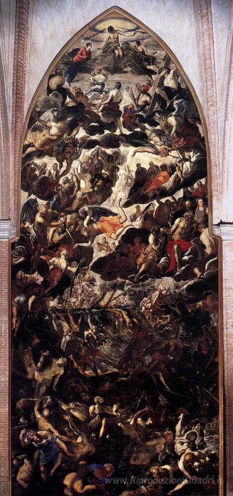 Ti offriamo una riproduzione artigianale su tela dell'opera famosa 'Il Giudizio Universale' di Tintoretto, dal Museo delle Riproduzioni.