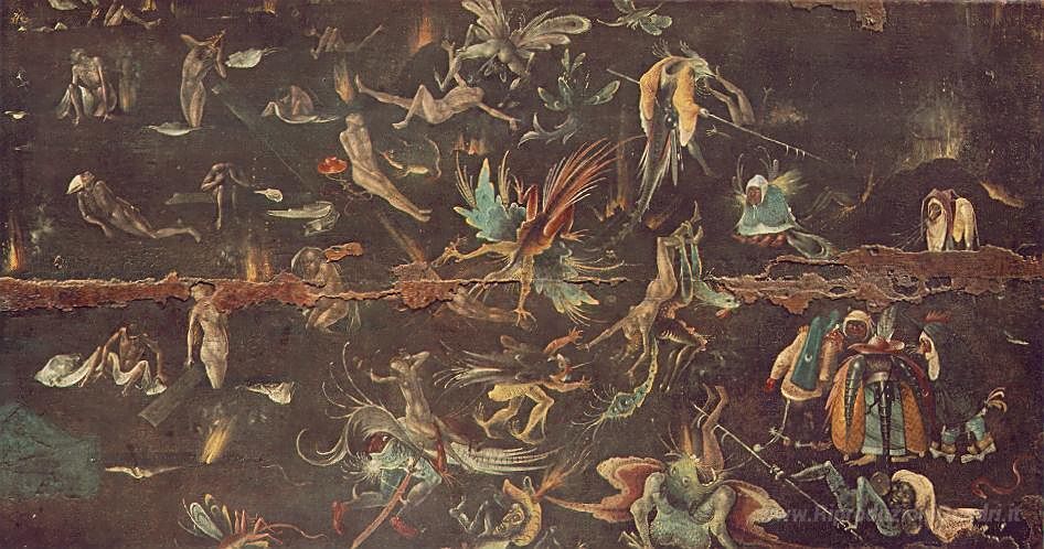 Ti offriamo una riproduzione artigianale su tela dell'opera famosa 'Il Giudizio Universale (particolare)' di Hieronymus Bosch, dal Museo delle Riproduzioni.