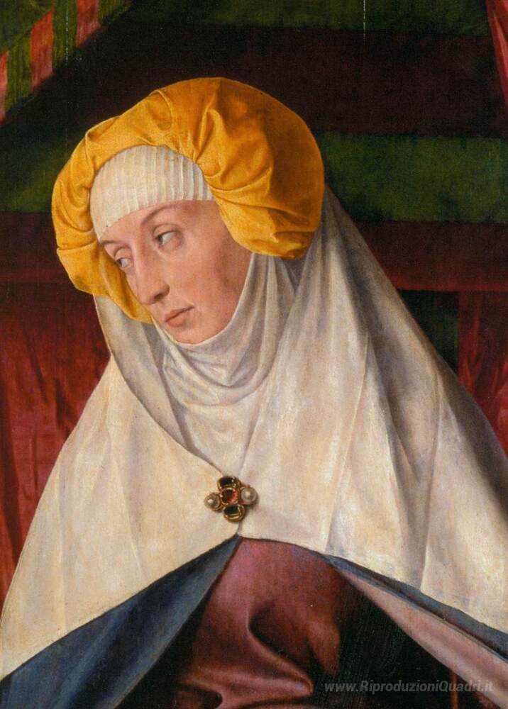 Ti offriamo una riproduzione artigianale su tela dell'opera famosa 'Il Moulins Trittico (particolare)' di Jean Hey, dal Museo delle Riproduzioni.