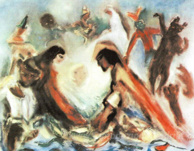 Ti offriamo una riproduzione artigianale su tela dell'opera famosa 'Il Pescatore leggenda' di Margareta Sterian, dal Museo delle Riproduzioni.