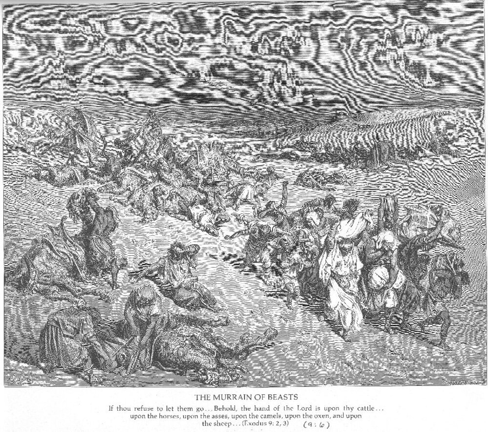 Ti offriamo una riproduzione artigianale su tela dell'opera famosa 'Il quinto peste. Malattia Bestiame' di Gustave Dore, dal Museo delle Riproduzioni.