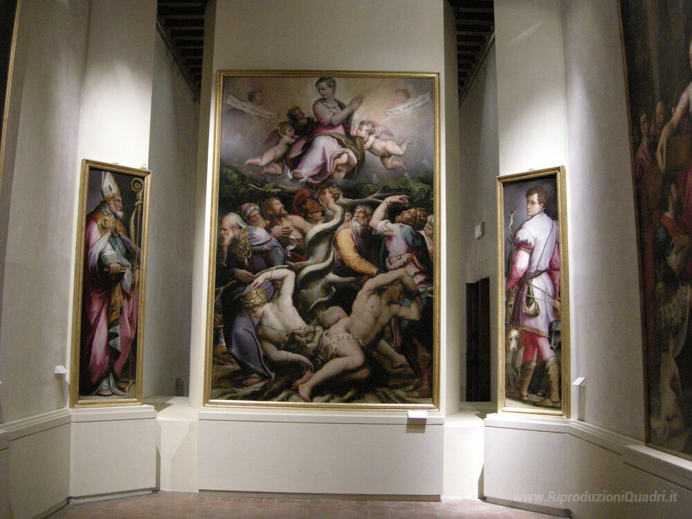 Ti offriamo una riproduzione artigianale su tela dell'opera famosa 'Immacolata Concezione (al centro), S. Eustachio (a sinistra) e S' di Giorgio Vasari, dal Museo delle Riproduzioni.