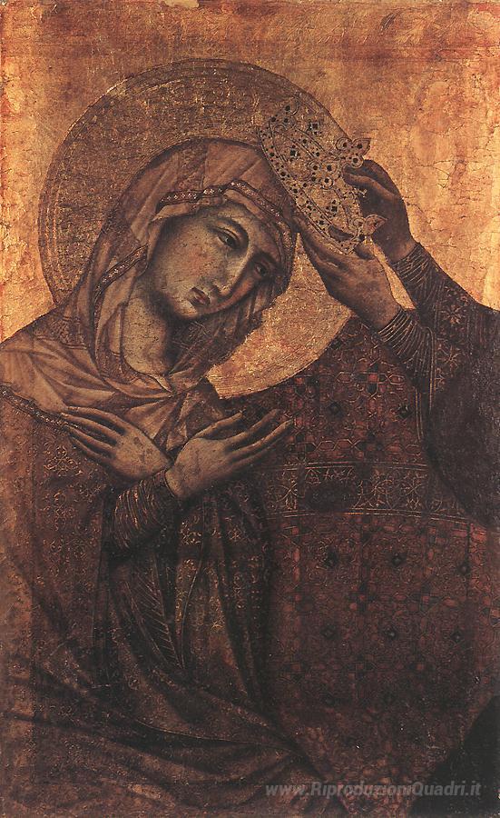 Ti offriamo una riproduzione artigianale su tela dell'opera famosa 'Incoronazione della Vergine' di Duccio, dal Museo delle Riproduzioni.