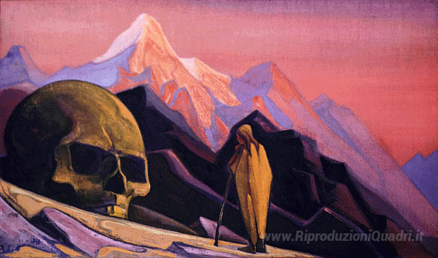 Ti offriamo una riproduzione artigianale su tela dell'opera famosa 'Issa e la testa del gigante' di Nicholas Roerich, dal Museo delle Riproduzioni.