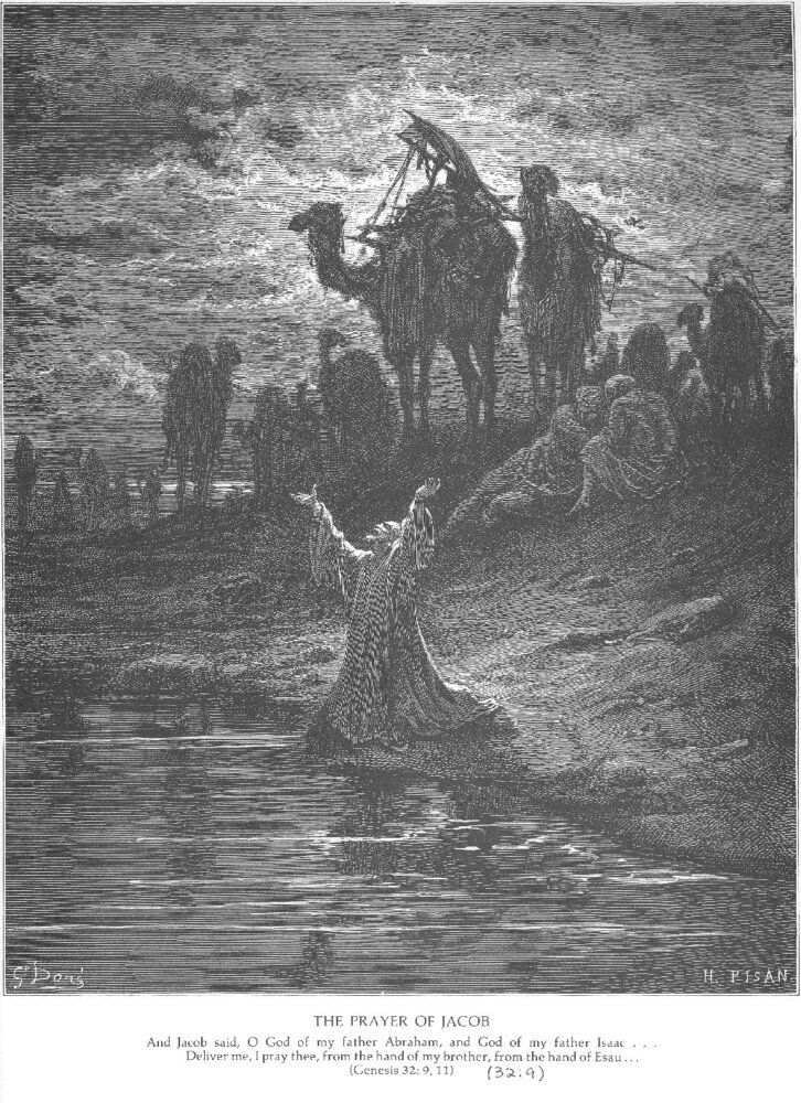 Ti offriamo una riproduzione artigianale su tela dell'opera famosa 'Jacob prega per la protezione' di Gustave Dore, dal Museo delle Riproduzioni.