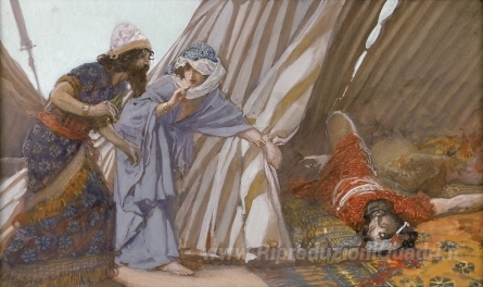 Ti offriamo una riproduzione artigianale su tela dell'opera famosa 'Jael Spettacoli a Barak, Sisera giaceva morto' di James Tissot, dal Museo delle Riproduzioni.