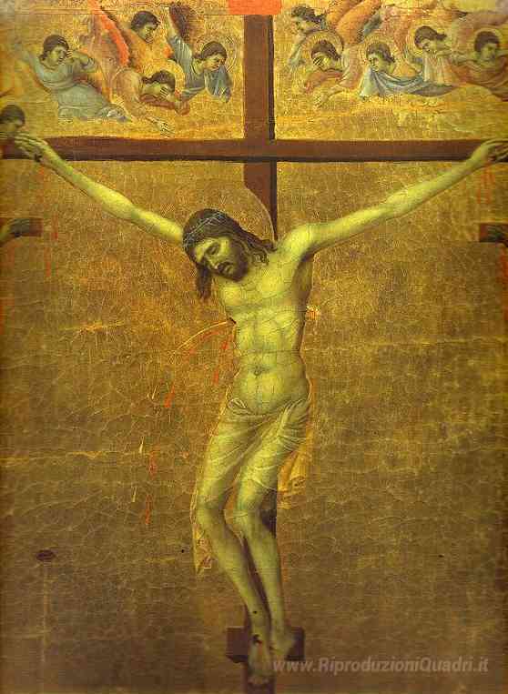 Ti offriamo una riproduzione artigianale su tela dell'opera famosa 'La Crocifissione' di Duccio, dal Museo delle Riproduzioni.