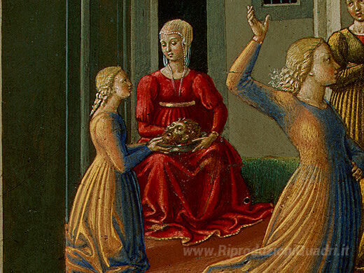 Ti offriamo una riproduzione artigianale su tela dell'opera famosa 'La danza di Salomè (particolare)' di Benozzo Gozzoli, dal Museo delle Riproduzioni.