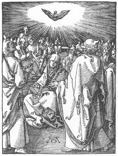 Ti offriamo una riproduzione artigianale su tela dell'opera famosa 'La discesa dello Spirito Santo' di Albrecht Durer, dal Museo delle Riproduzioni.