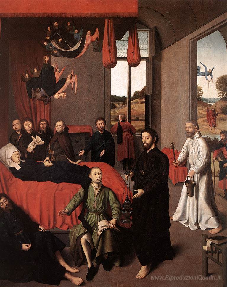Ti offriamo una riproduzione artigianale su tela dell'opera famosa 'La Morte della Vergine' di Petrus Christus, dal Museo delle Riproduzioni.