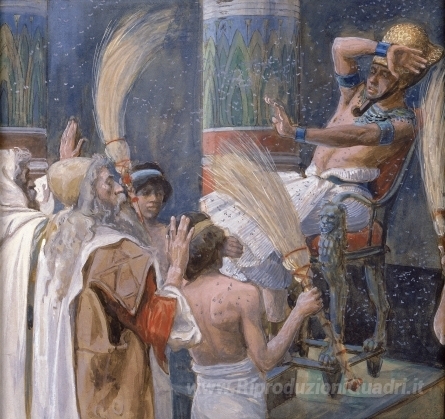 Ti offriamo una riproduzione artigianale su tela dell'opera famosa 'La peste di mosche' di James Tissot, dal Museo delle Riproduzioni.