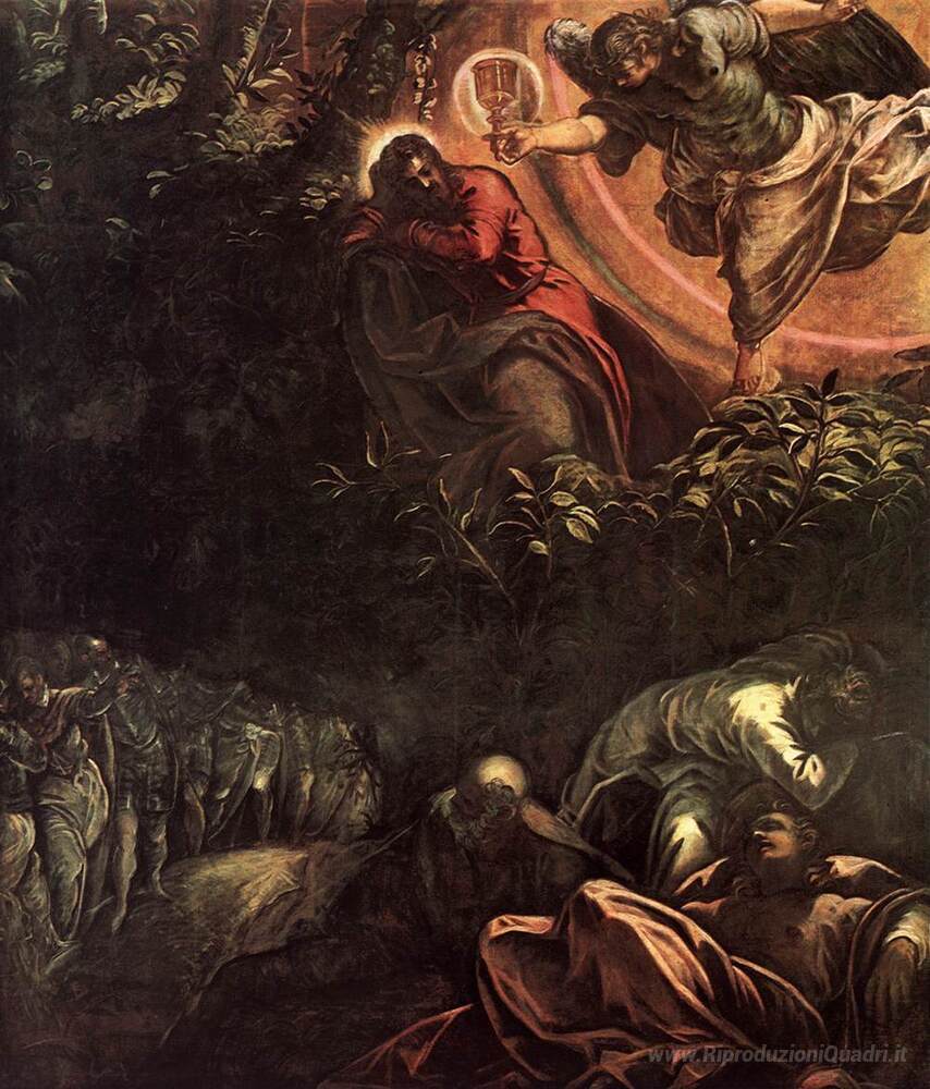 Ti offriamo una riproduzione artigianale su tela dell'opera famosa 'La preghiera nell'orto' di Tintoretto, dal Museo delle Riproduzioni.