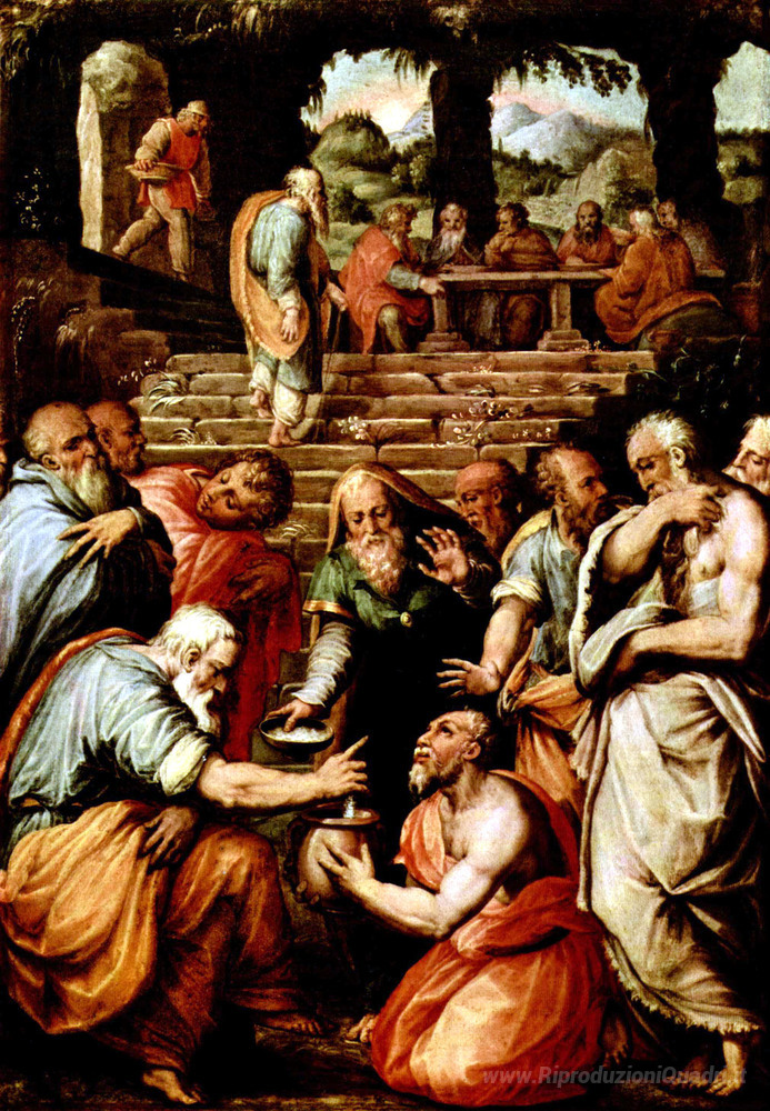 Ti offriamo una riproduzione artigianale su tela dell'opera famosa 'La pulizia profeta Eliseo Naaman' di Giorgio Vasari, dal Museo delle Riproduzioni.