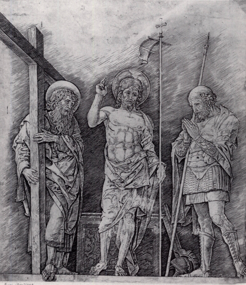 Ti offriamo una riproduzione artigianale su tela dell'opera famosa 'La Risurrezione di Cristo' di Andrea Mantegna, dal Museo delle Riproduzioni.