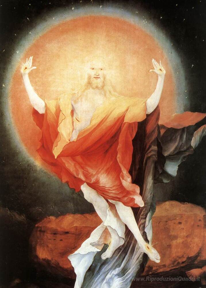 Ti offriamo una riproduzione artigianale su tela dell'opera famosa 'La Risurrezione di Cristo (particolare dall'ala destra della Pal' di Matthias Grünewald, dal Museo delle Riproduzioni.