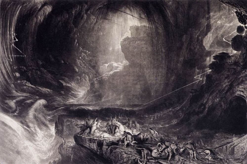Ti offriamo una riproduzione artigianale su tela dell'opera famosa 'La sera del Diluvio' di John Martin, dal Museo delle Riproduzioni.